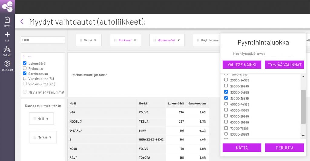 Luvut ovat peräisin Mittariston Myydyt vaihtoautot -datapohjasta, josta löydät lisätietoa alla.